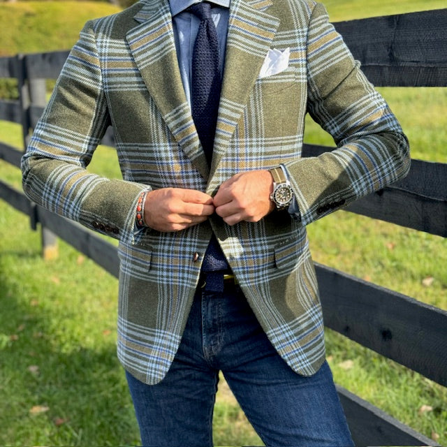 Chocolate Brown & Tan Houndstooth Tweed Sport Coat